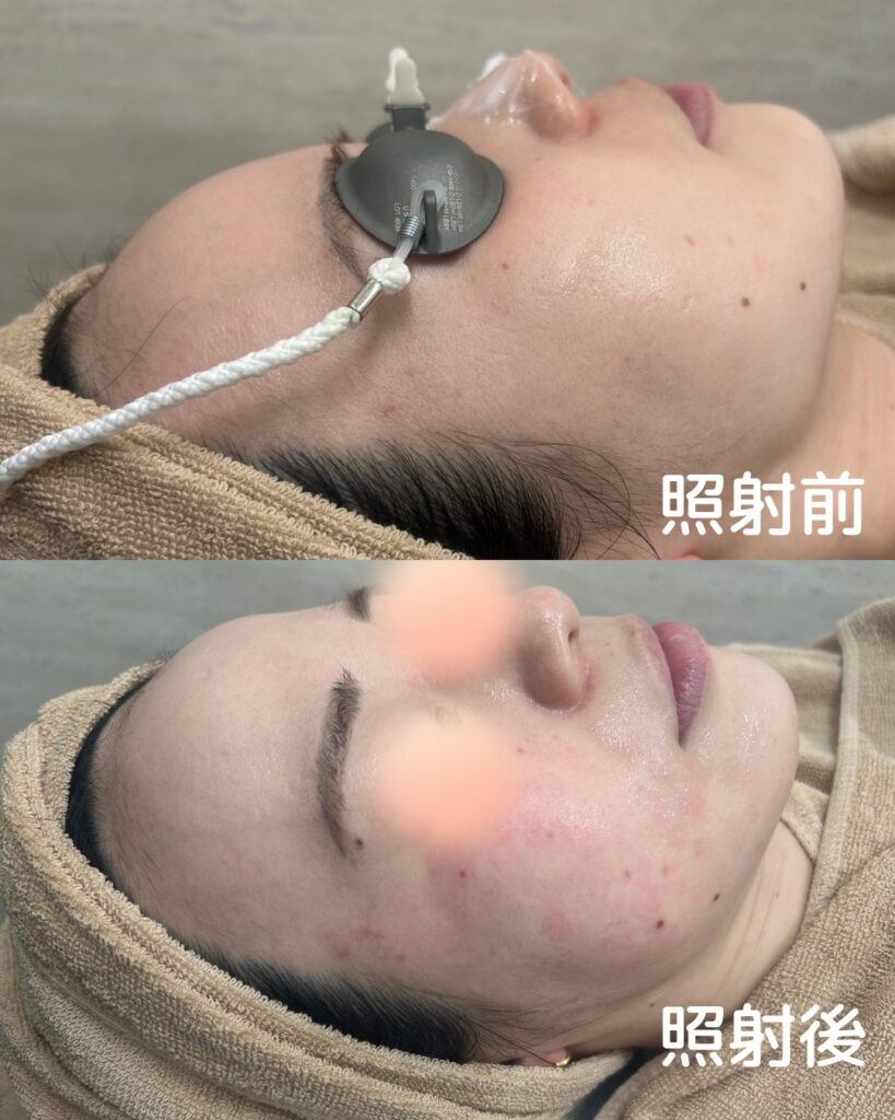 ダウンタイム写真:照射前と照射直後の赤み