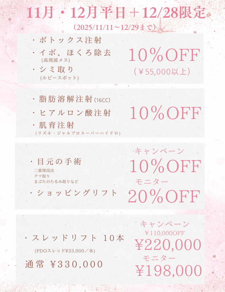 人気施術が受けられる【年末キャンペーン】を実施いたします!!