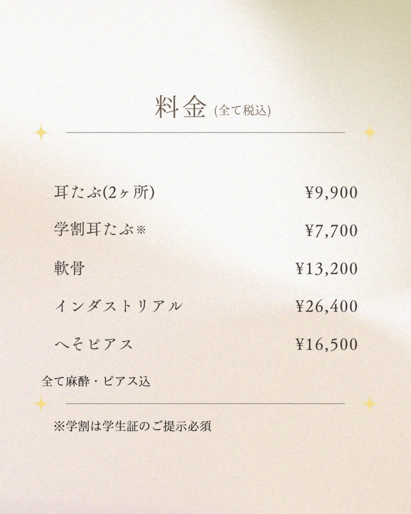 ピアスの穴あけは医療行為ですので医療機関での施術をおすすめしています。