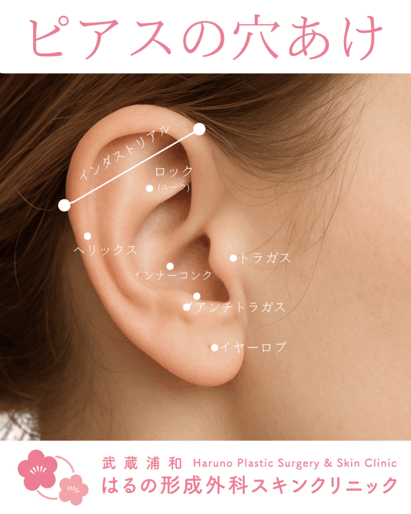 武蔵浦和はるの形成外科スキンクリニックでは耳たぶピアスをはじめ軟骨やへそピアスの穴あけにも対応しています🎵