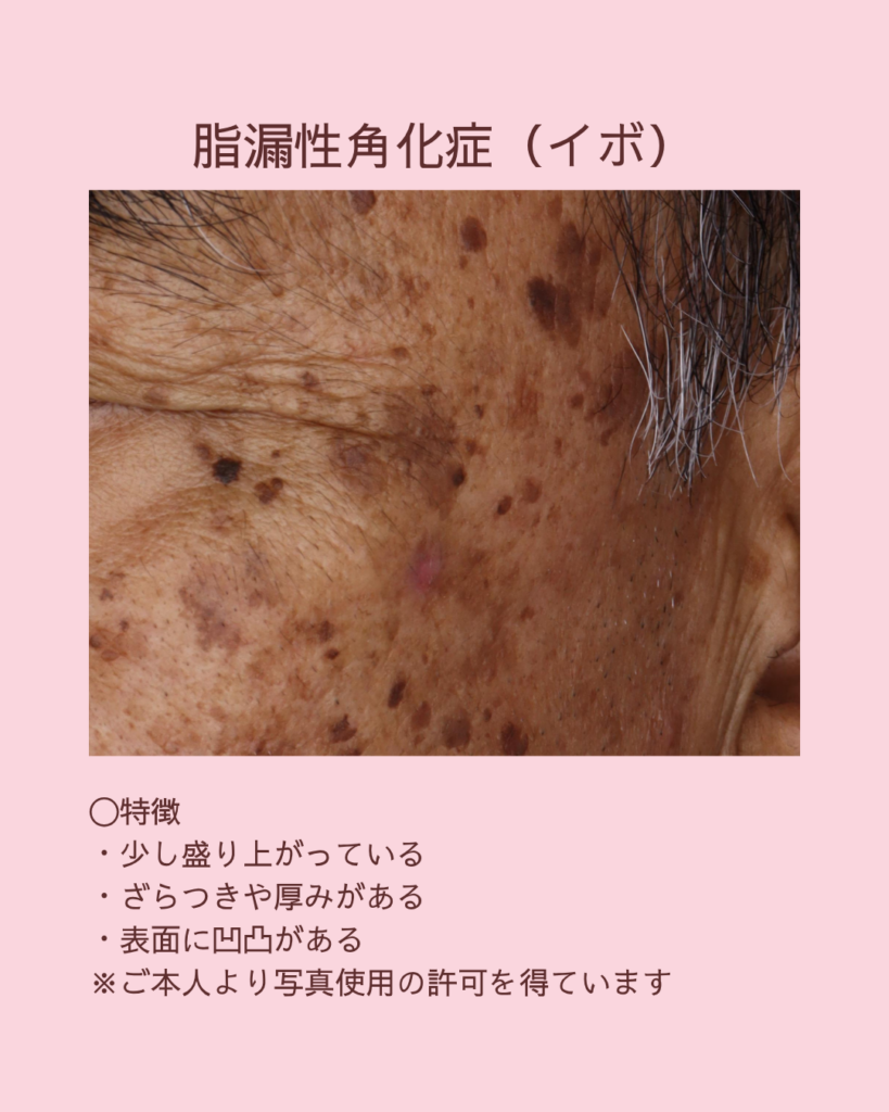 一方、「いぼ」として相談されることが多いもののひとつに、脂漏性角化症があります。