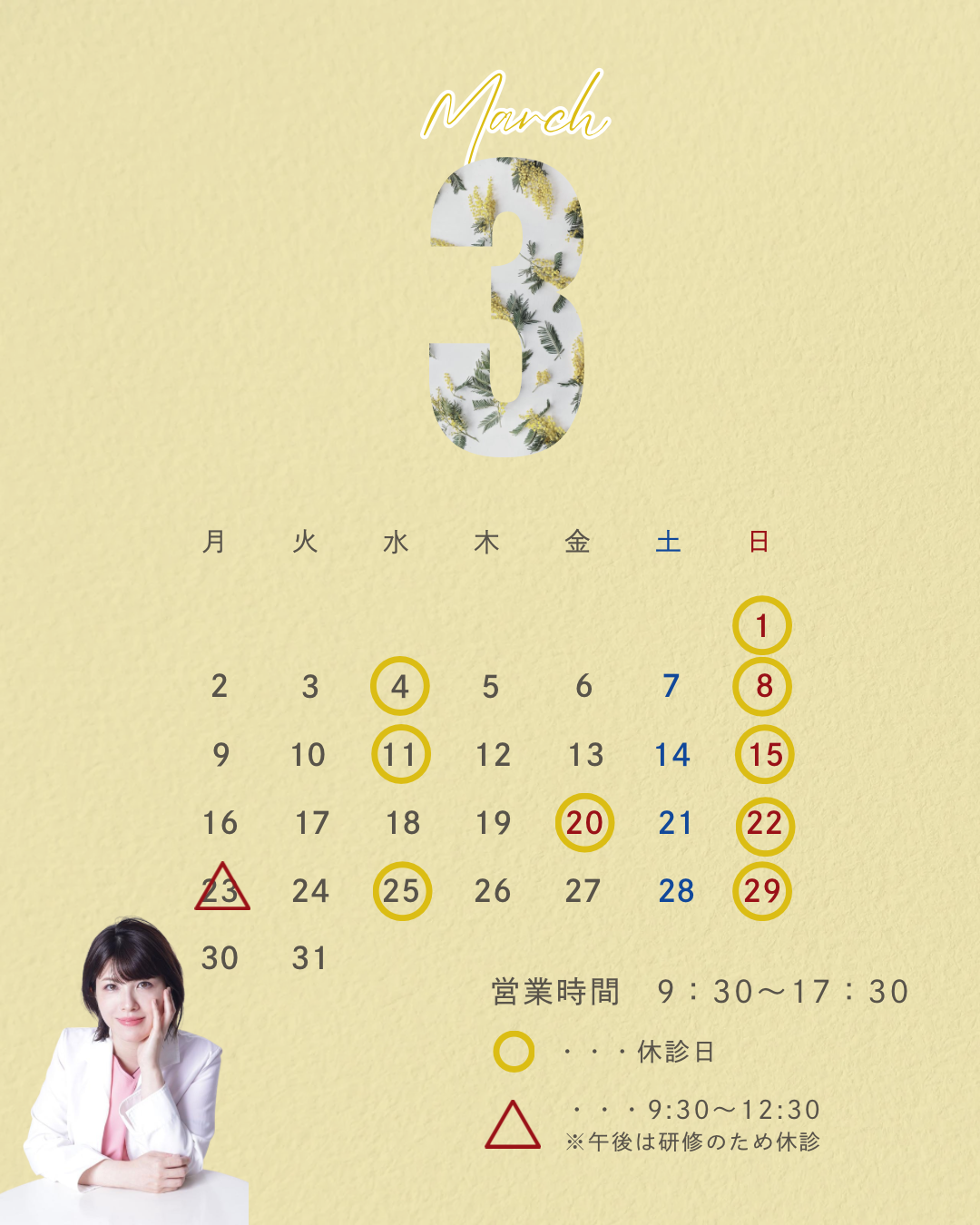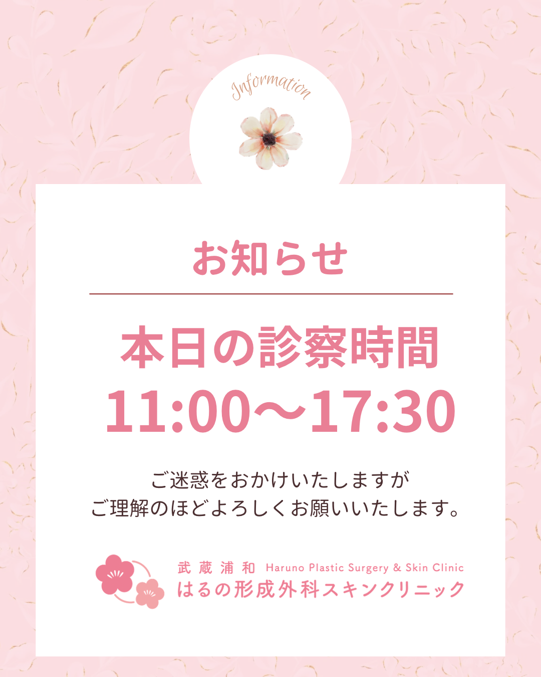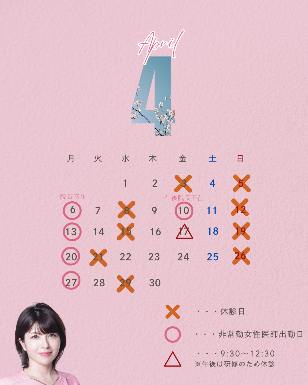 武蔵浦和はるの形成外科スキンクリニック、4月の休診日のご案内です!